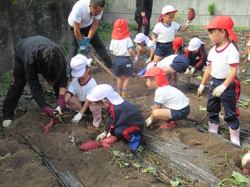 たくさんの芋がでてきて、「先生~大きいのとれた~!!」と