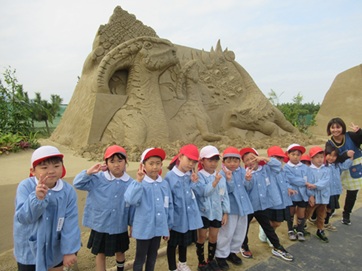 色々な砂像を見ることができて、幼稚園の砂場でも作っている